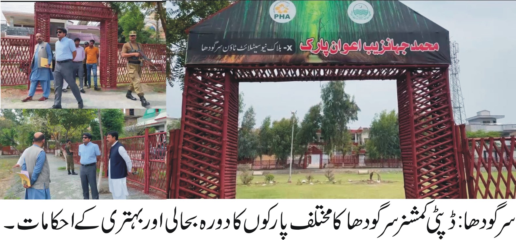 سرگودھا (شکیل خان سے) ڈپٹی کمشنر حسین احمد رضا چوہدری نے شہر میں تفریحی سہولیات کی بہتری کے لیے اقدامات کا جائزہ لینے کے لیے ایم ڈی ہارٹیکلچر اتھارٹی محمد ارشد کے ہمراہ مختلف پارکوں کا تفصیلی دورہ کیا۔ انہوں نے نیو سیٹلائٹ ٹاؤن کے وائی بلاک میں صدیق اکبر گراؤنڈ اور ایکس بلاک میں واقع جھانزیب اعوان پارک کا معائنہ کیا گیا۔
