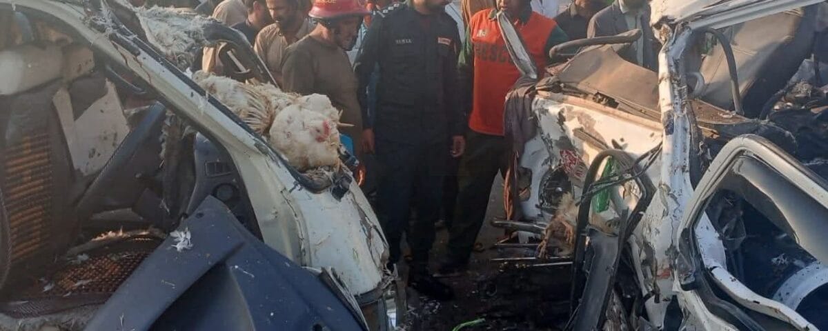 حادثے کے بعد مرغیوں والی گاڑی میں موجود درجنوں مرغیاں بھی ہلاک ہو گئیں، جن کی لاشیں سڑک پر بکھر گئیں۔