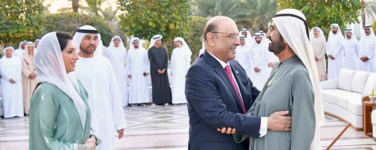 ایوان صدر سے جاری بیان کے مطابق صدر مملکت آصف علی زرداری اور متحدہ عرب امارات کے وزیراعظم شیخ محمد بن راشد المکتوم نے پاکستان اور متحدہ عرب امارات کے درمیان دوطرفہ تعلقات کو مزید مضبوط بنانے کے طریقوں پر تبادلہ خیال کیا۔