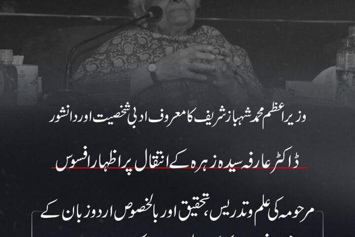 وزیراعظم شہباز شریف کا معروف محقق و اردو زبان کی خادم، ڈاکٹر عارفہ سیدہ زہرہ کو خراجِ عقیدت — علم و ادب کی دنیا ایک درخشاں ستارہ کھو بیٹھی
