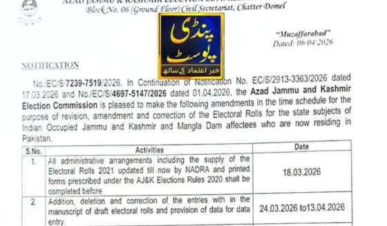 آزاد جموں و کشمیر قانون ساز اسمبلی کے حلقہ ایل اے 39 جموں 6 سے تعلق رکھنے والے پاکستان میں مقیم ہزاروں مہاجرینِ جموں اور متاثرین منگلا ڈیم ووٹر لسٹ میں اندراج نہ ہونے کے باعث اپنے بنیادی جمہوری حق، یعنی حقِ رائے دہی سے محروم ہو گئے ہیں۔ متاثرین مزید پڑھیں