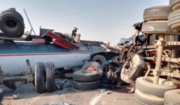 روڈ پر ڈمپر اور آئل ٹینکر کی ٹکر،ہزاروں لیٹر آئل بہہ نکلا